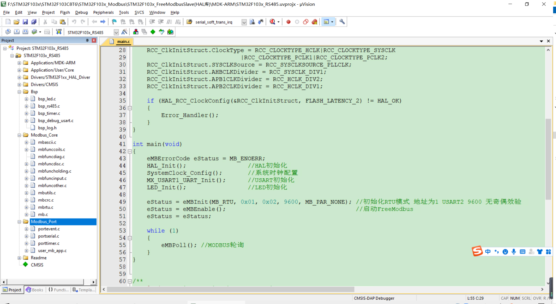 直接替换/drivers目录下的硬件操作,十分钟就能在新板子上跑通MODBUS主从机通信。