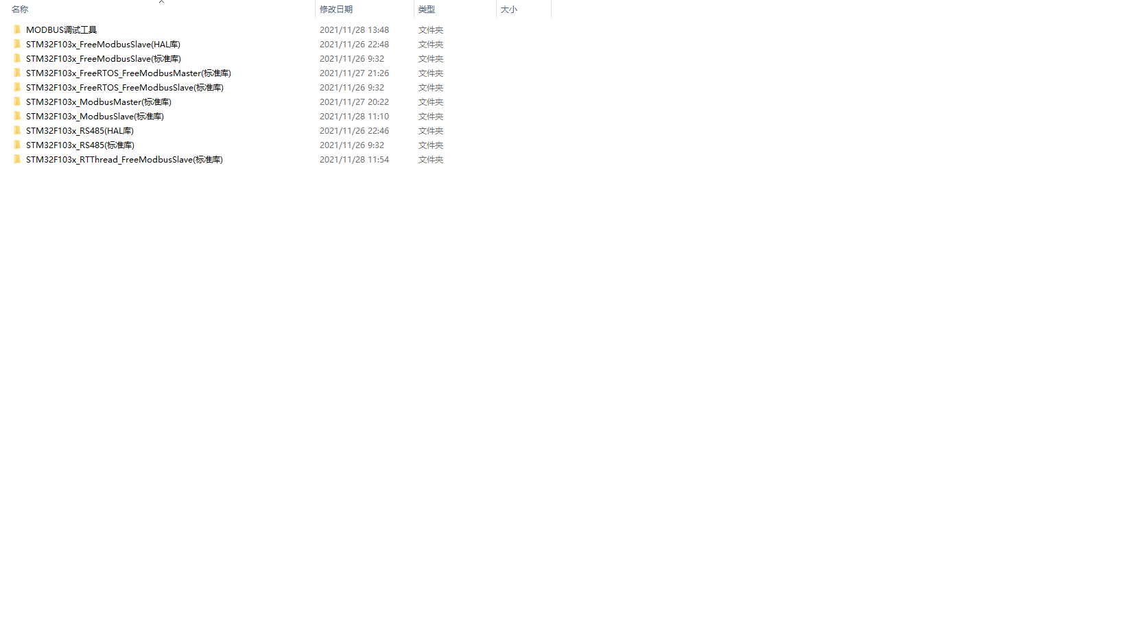 STM32F103x系列RS485、MODBUS学习资料,RS485通信历程(标准库、HAL库);应用层协议MODBUS协议,包含自己编写的MODBUS协议,移植开源FreeModbus协议;移植带操作系统的资料(FreeRTOS、RT_Thread),源码都测试过可以使用,工程规范、逻辑清楚、可以快速移植的自己的板子,学习MODBUS通信协