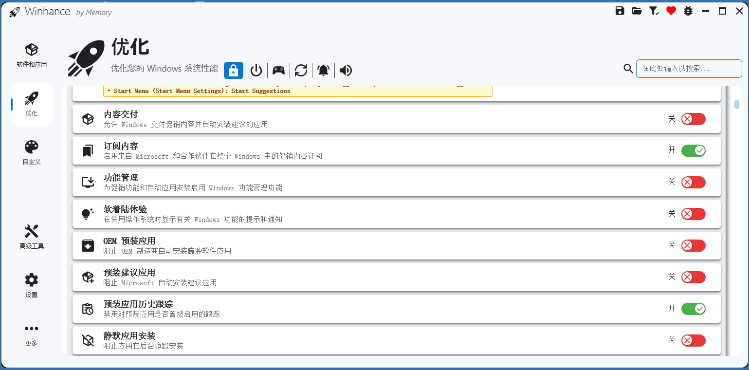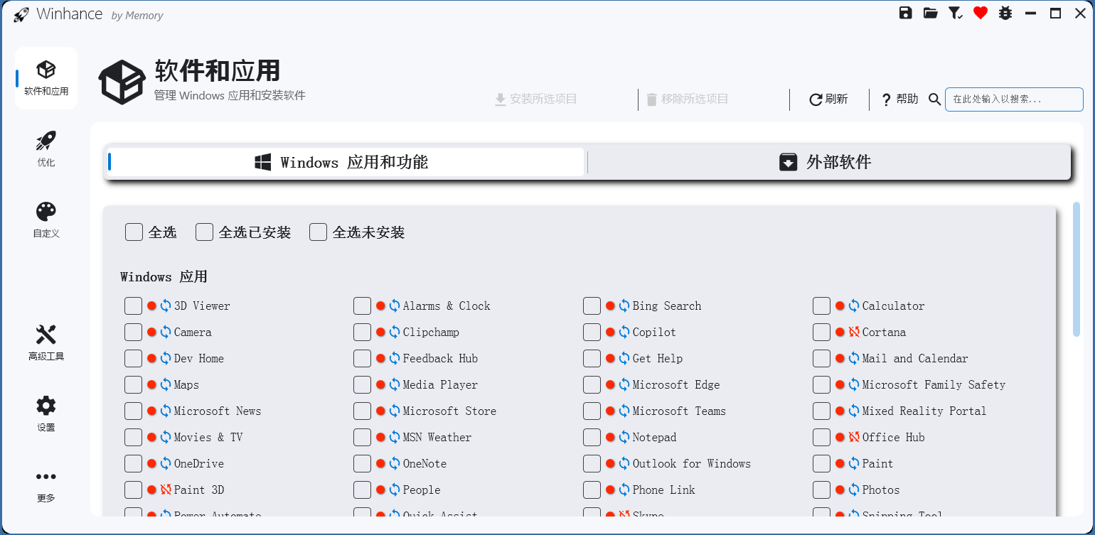 Winhance提供了一站式的系统管理解决方案。从软件的卸载与安装,到系统深度优化,再到隐私设置的精细调整,几乎涵盖了Windows系统管理的方方面面。你可以通过这款工具快速清理系统中的冗余软件,安装常用的实用程序,还能根据个人喜好定制系统界面,打造真正属于自己的Windows环境。