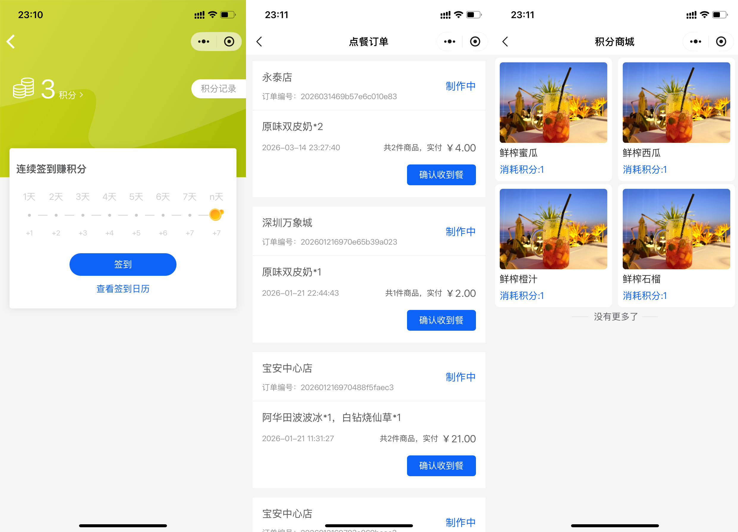 4、会员签到【支持签到获取积分,积分可用于积分商城或兑换优惠券】