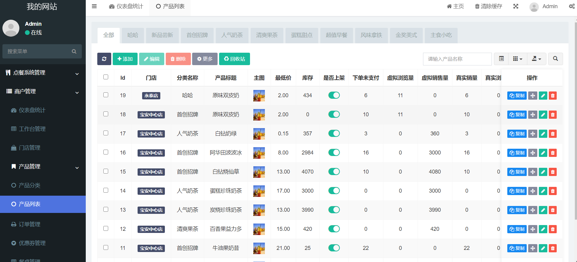2、多店管理【支持类似肯德基,麦当劳等多店铺模式】