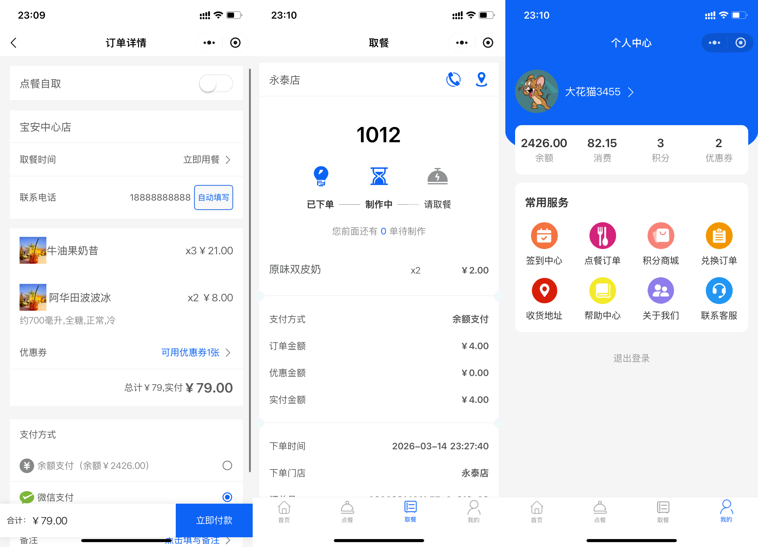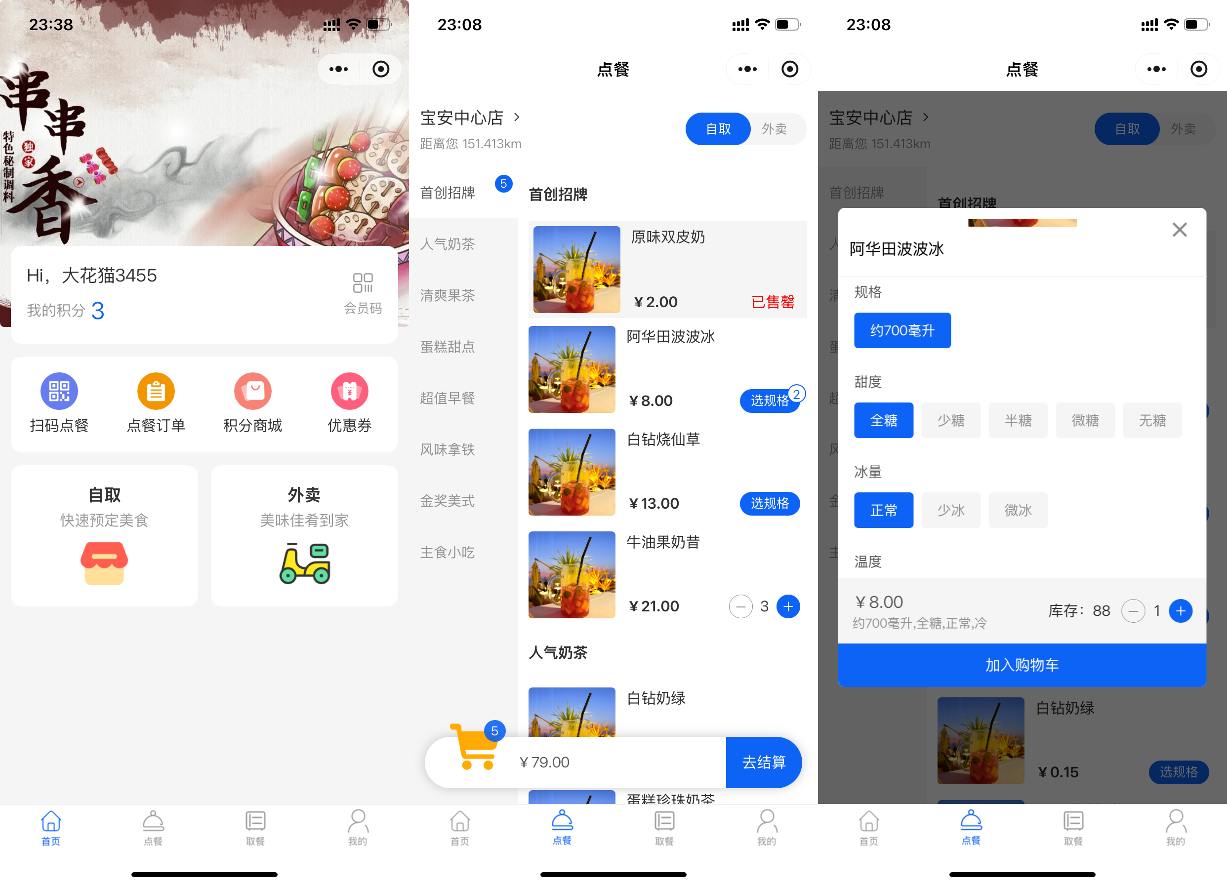 1、自取&外卖【支持商家自送外卖和用户自取购买模式】